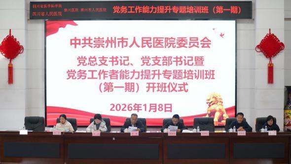 1月8日15时,崇州市人民医院新任党总支书记、党支部书记暨党务工作者能力提升专题培训班(第一期)开班仪式在医院学术报告厅隆重举行。崇州市委党校教育科科长、高级讲师宋洁,医院党委领导班子成员,新任党总支书记、党支部书记,普通党员及医共体成员单位党务工作者共聚一堂,开启集中学习提升之旅。开班仪式由医院专职党委副书记张丽红主持。