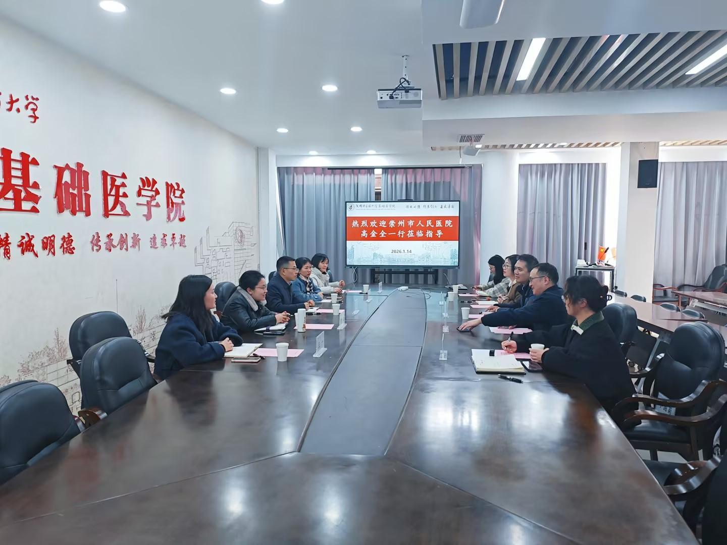 近日,崇州市人民医院党委副书记、院长高金全带队,副院长赵鹃、曹勍及医务部、科教部负责人一行,赴成都中医药大学基础医学院开展专项调研与深度交流。成都中医药大学基础医学院副院长王东携科技服务中心主任文跃强,及科研与研究生科、学生科相关负责人陪同接待,双方围绕医教融合、协同发展等核心议题展开务实座谈。