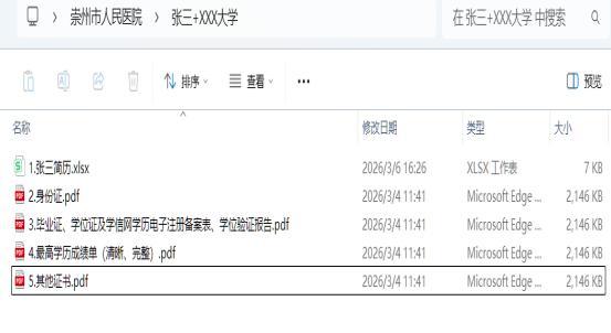 上述(1)-(5)要求提供的资料,须按顺序扫描成PDF格式压缩文件,文件命名为 “规培+姓名+学校”发送至指定邮箱(kjk12345678czs@qq.com)(注:未按照要求投递简历和资料者视为自动放弃报名资格),请按以下示例进行压缩打包发送: