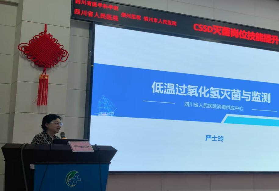 四川省人民医院消毒供应中心护士长、四川省护理学会消毒供应专业委员会主任委员严士玲教授就“低温过氧化氢灭菌与监测”进行专题授课。