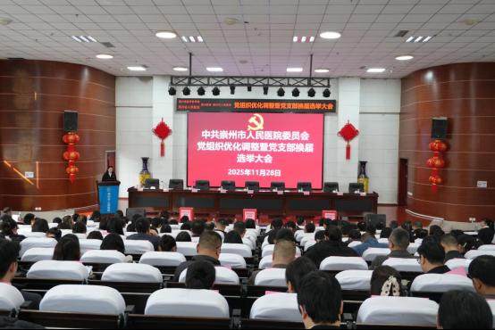 为进一步加强医院党支部标准化、规范化建设,更好地发挥党支部战斗堡垒作用,根据《中国共产党章程》《中国共产党支部工作条例(试行)》等有关规定,经中共崇州市卫生健康局机关委员会批复,2025年11月28日,崇州市人民医院党委在学术报告厅组织召开党组织优化调整暨党支部换届选举大会,党员领导干部及全体党员参加会议,会议由专职党委副书记张丽红主持。