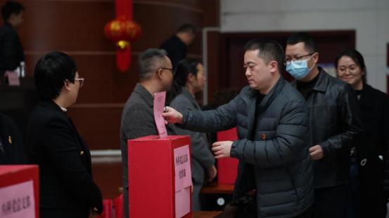 接着,进入第一届党总支成立选举环节。大会审议并表决通过了《中共崇州市人民医院委员会第一届党总支委员会选举办法(草案)》,表决通过了监票人、计票人建议名单及党总支委员正式候选人名单。在充分发扬党内民主、广泛征求党员意见的基础上,以无记名投票方式,差额选举产生了第一届党总支部委员会委员。当选的委员会召开第一次全体会议,选举产生了党总支书记,大会现场向全体党员通报了选举结果。