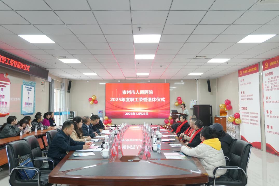 2025年12月23日下午,崇州市人民医院为11位退休职工举办了主题为“岁月映初心,荣光暖杏林”的荣誉退休仪式。在工会主席王礼莎主持下,仪式在至善会议室内温情启幕。