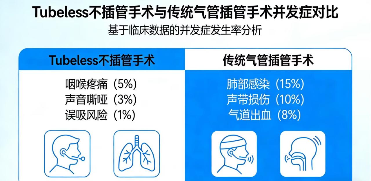 从“治病”到“治人”,Tubeless技术的落地是现代医学人文关怀的生动诠释。对于教师、歌手等依赖嗓音与呼吸功能的特殊职业人群,该技术能最大程度保护喉部与膈肌功能,守护其职业尊严与生活质量;对于老年患者或基础疾病较多的人群,更轻的创伤与更快的康复意味着更低的手术风险,让更多患者获得治愈机会。