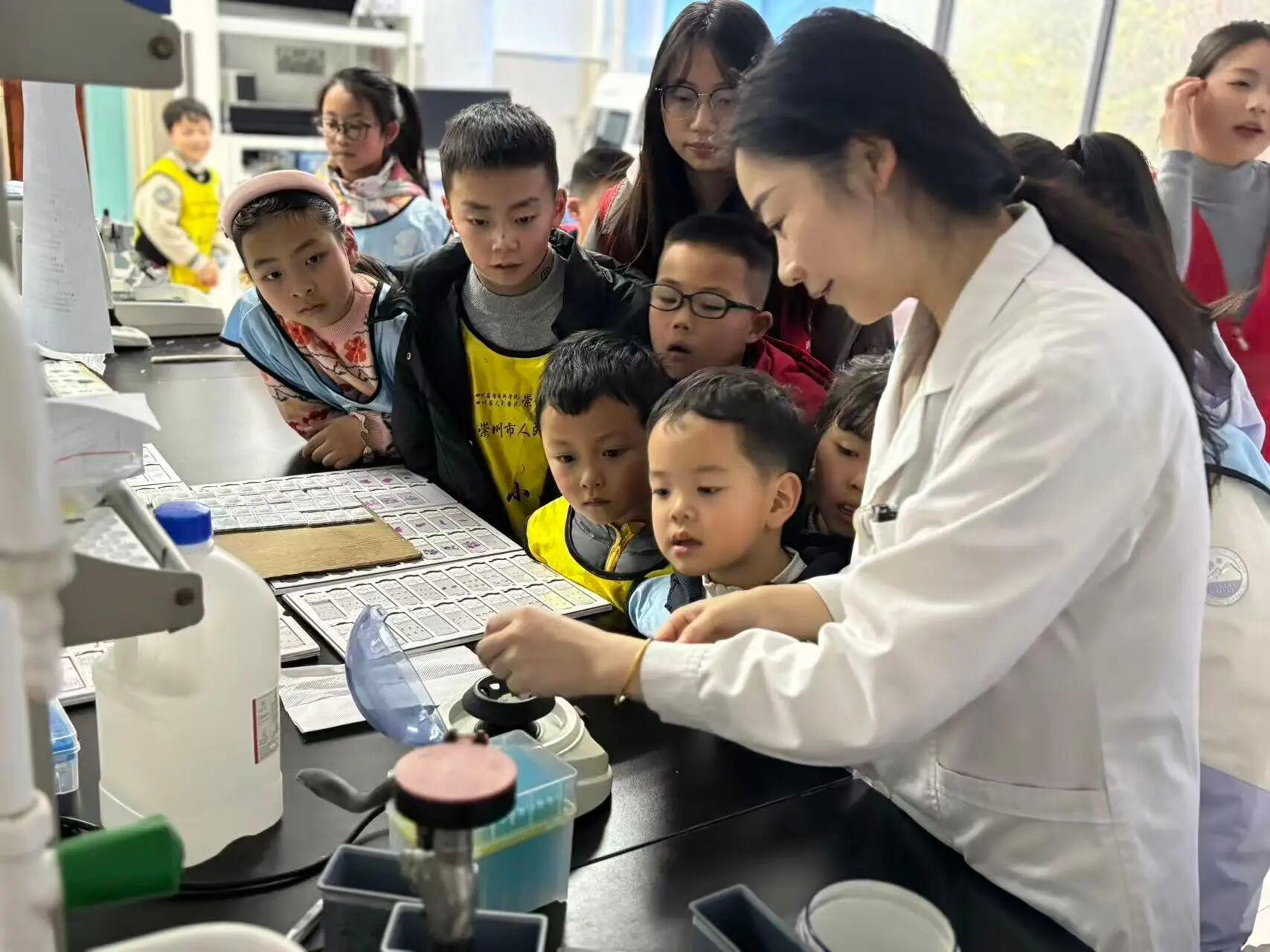医趣研学,感受父母辛劳。孩子们分组走进门诊、检验科、病理科等科室,聆听医护人员讲解工作流程,观看基础操作演示。在沉浸式体验环节,孩子们亲手操作显微镜,观察微生物与病理组织,在探索医学奥秘的同时,深刻体会父母工作的不易。