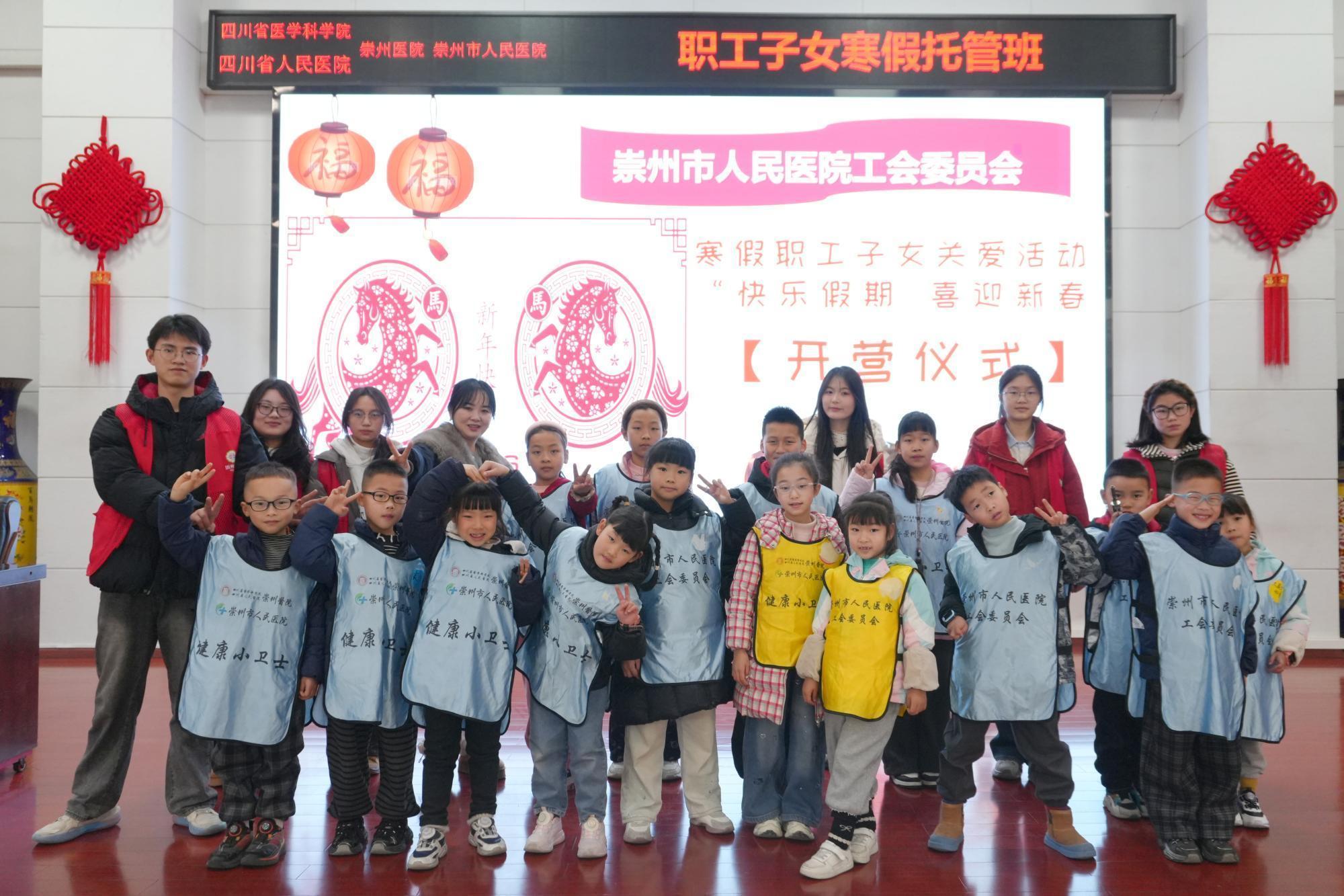 为切实解决医院职工寒假子女看护难题,让职工安心投入医疗工作,同时传承医学人文精神,2026年2月2日至6日,我院工会、团委、红十字会联合崇州市青年志愿者协会,共同举办“快乐寒假 喜迎新春”职工子女托管活动。活动面向我院及医共体成员单位6至14岁职工子女,提供安全、有趣、充实的托管服务,以暖心举措传递医院关怀。