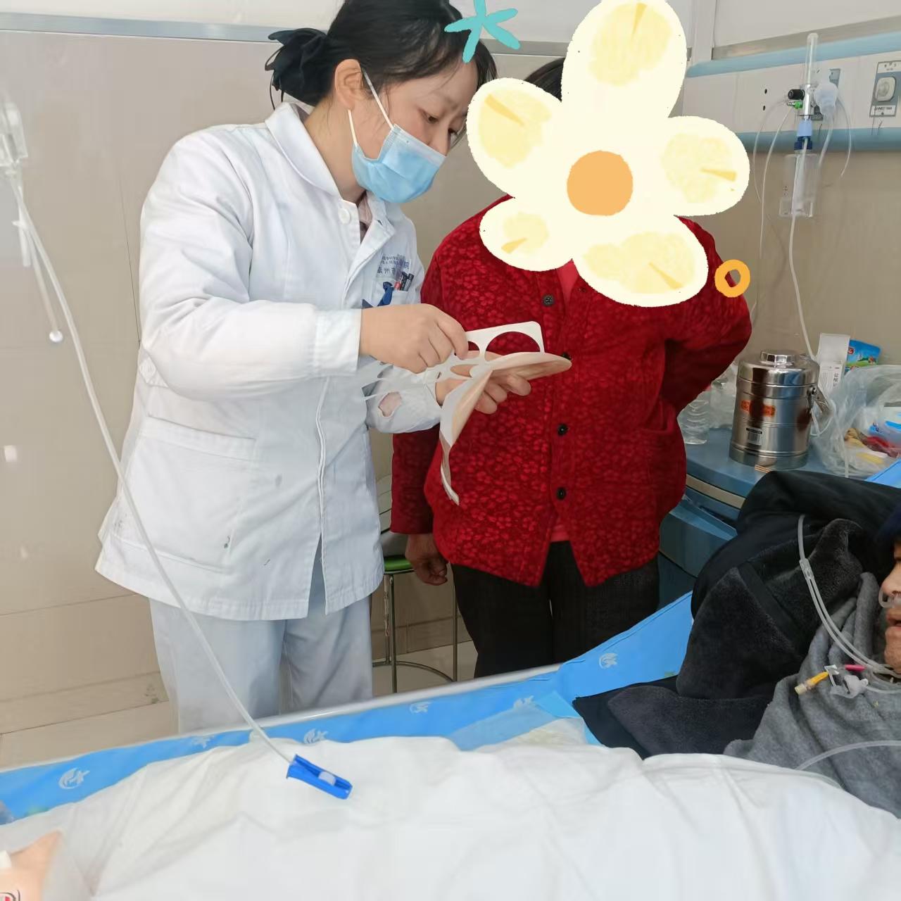 护理团队的到来,则将这份陪伴延伸到生活最私密的角落。护士长袁平带领的护理人员面对造口护理的繁琐, 没有丝毫犹豫。她们俯身细致清洁、更换,用轻柔的手法和清晰的话语,手把手教会家属:这不是令人畏惧的“任务”,而是充满爱意的日常照料。