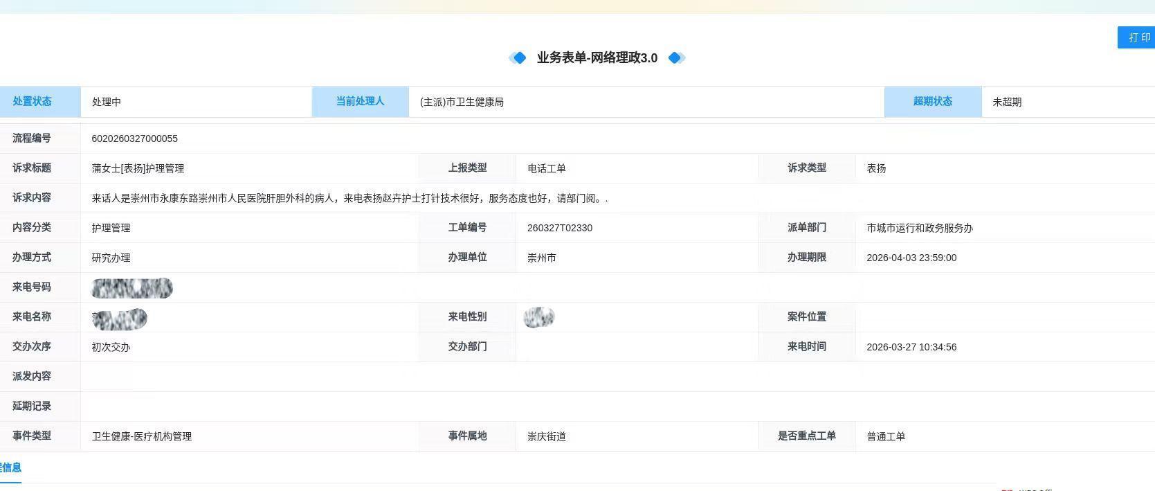 2026年3月31日,一封满怀感激的表扬信通过市政务平台,传递至我院。一位患者希望通过政务平台,向我院肝胆外科护士赵卉表达最真挚的感谢。这背后,记录了一段精湛医术与人文关怀交相辉映的温暖旅程。